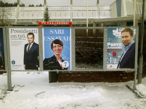 ”... ERI EHDOKKAIDEN TÄRKEIMMÄT VAALITEEMAT OVAT KIRKASTUNEET. SAULI NIINISTÖN KESKEISIN TEEMA ON SELKEIDEN MIELIPITEIDEN VÄLTTELY JA PAAVO LIPPOSELLA KAUNASANOMALEHTIEN BOIKOTOINTI.