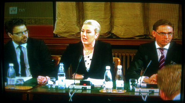 ![]() Sdp:n puheenjohtaja Jutta Urpilainen päästelee pötyjään hallituksen tiedotustilaisuudessa torstaina 2012-03-22. Vieressä Vihreiden puheenjohtaja Ville Niinistö haukkoo henkeään ja Kokoomuksen puheenjohtaja Jyrki Katainen kuuntelee totisena.